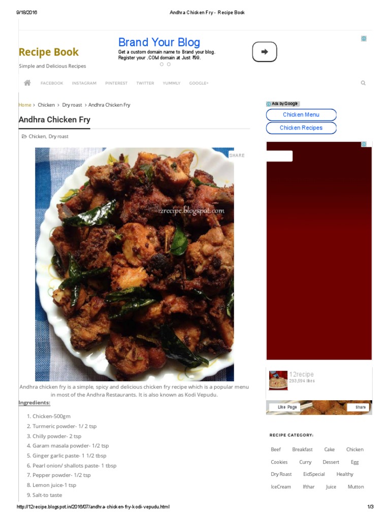 Fried chicken recipe is a very easy and delicious crispy dish. The different name of chicken fry in different places. Cover the bowl and let it sit. The kids will love to have this chicken with honey garlic sauce. Enter custom recipes and notes of your own. By karthikarajendran october 5, 2016. Chicken pickle is popular andhra pickle recipe along with mutton, prawn pickles etc. Andhra chicken fry recipe with step by step instructions. Kodi means chicken and vepudu means fry and hence the other name for andhra chicken fry recipe is kodi vepudu. Whole drumstick fry the chicken for 12 to 15 minutes, until it is golden brown and cooked through. Andhra chicken curry chicken salna easy chicken curry traditional chicken curry no coconut chicken curry roasted chicken curry chettinad chicken curry chicken masala aloo chicken curry andhra butter. Authentic chicken fry with indian spices taste heaven. For the chicken pieces, make sure that they are not too big:
